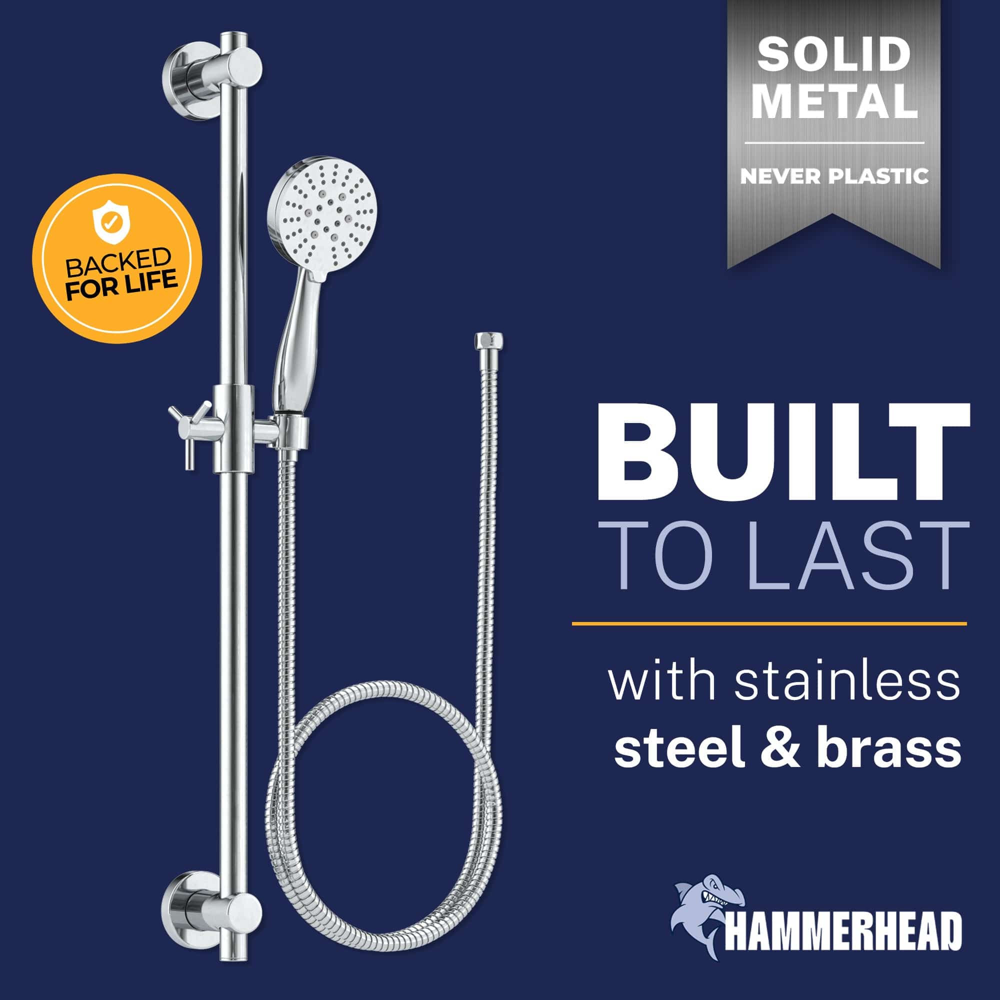 Say goodbye to plastic holders, brackets and connectors – the first components to give out from wear and tear – and hello to the durability of an ALL METAL slide bar and multi-function handheld shower head. Buy with confidence knowing every component is backed by our Limited Lifetime Warranty and BUILT to LAST!