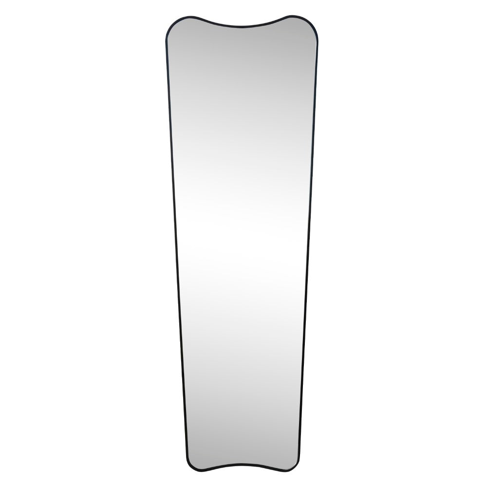 The classic curves of this modern dressing mirror add an Art Deco vibe to any space. This versatile wall-hung or wall-leaning design is strengthened by a narrow metal frame. Its vertical orientation is ideal for a closet, bedroom or entry area.
